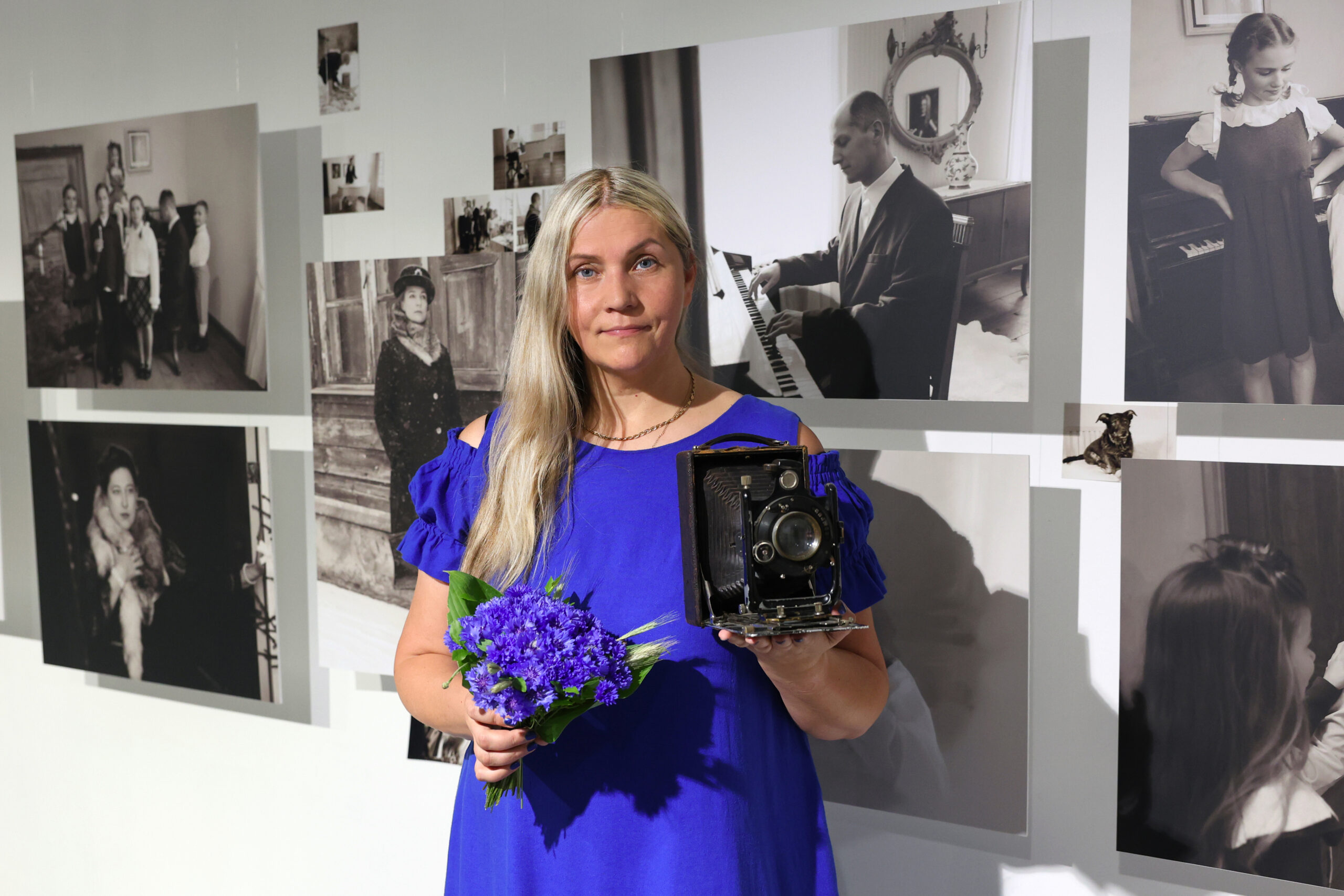 Fotogrāfe savā izstādē. Cēsnieces Sintijas Cērpiņas fotogrāfijās pagātne atklāj šodienu. FOTO: Sarmīte Feldmane