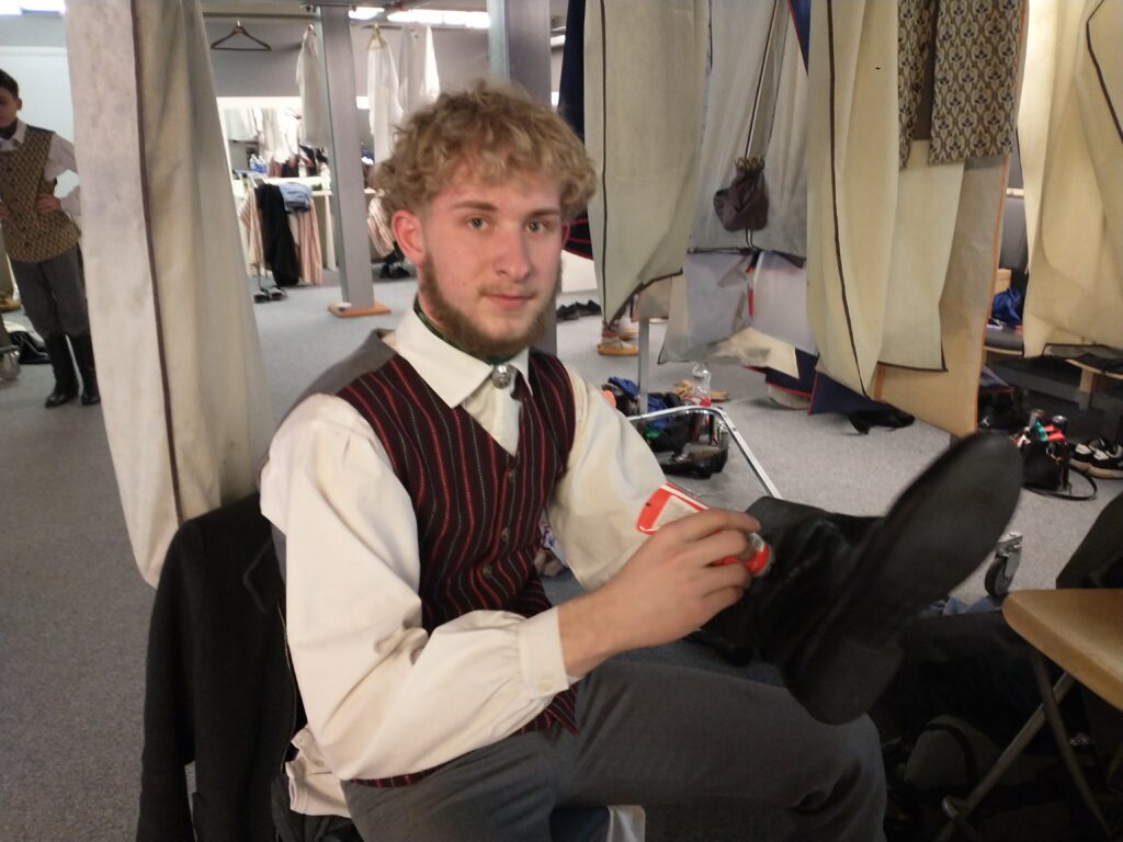 Cēsu Valsts ģimnāzijas jauniešu deju kolektīva “Kande” dalībnieki ģērbtuvē pošas, lai pavisam drīz izietu uz skatuves. Marija Luize Trezune palīdz meitenēm sapīt bizes, saspraust saktas. Viņa ir “Kandes” bijusī dejotāja. “Nevaru tik svarīgā brīdī nebūt kopā ar savējiem,” saka Marija Luize un pastāsta, ka tagad ir studente, dejo “Daiļradē”, bijusi arī “Raitā soļa” dejotāja, bet ģimnāzijas kolektīvs aizvien sirdij tuvākais.