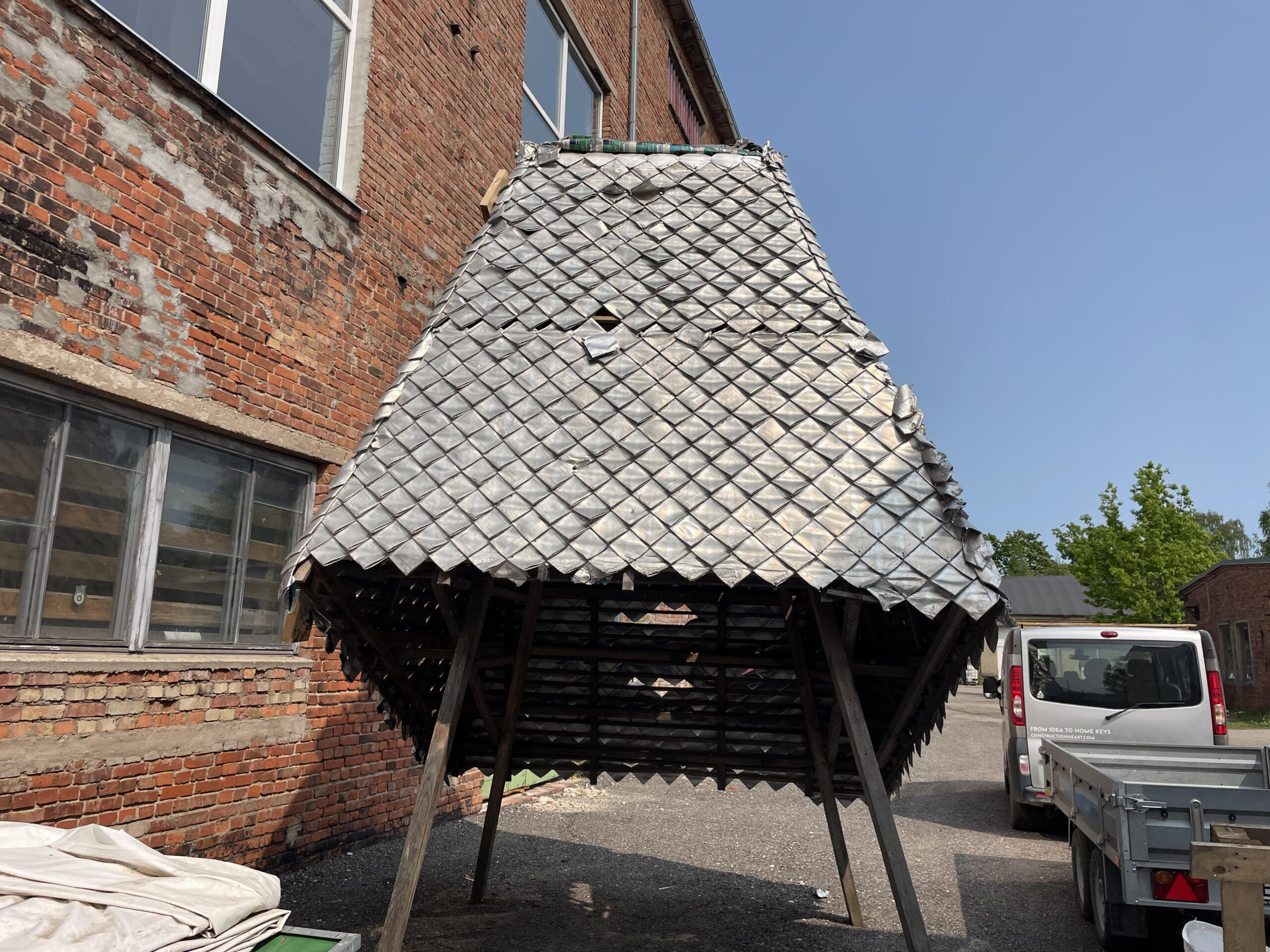 Pirms vairāk nekā desmit gadiem, 2013. gada augustā, Rīgas Tehniskās universitātes starptautiskajā arhitektūras vasaras skolā kopā ar latviešu un ārzemju studentiem arhitekts Niklāvs Paegle un kolēģi Tomass Rendals-Peidžs, Teodors Mollojs vadīja darba grupu, kura izgatavoja būvi, kas līdz šim atradās skvērā pie stacijas. Pasākuma radošie kuratori bija arhitekts Toms Kokins un Evelīna Ozola. Sadarbība partneris – Cēsu Centrālā bibliotēka.
