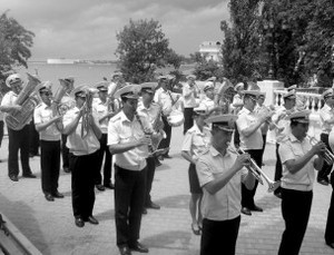 Krimas lielākajā pilsētā Sevastopolē ikdienā netrūkst dienvidnieciskas burzmas, lai gan kuģu parādes laikā piekraste no skatītāju daudzuma patiešām sanot kā bišu stropā. Nogriezties no promenādes, kas paver skatu uz saulē mirdzošiem jūras vārtiem, un atrauties no suvenīru pārdotavām man liek mūzikas skaņas. Laukumā pie teātra ēkas spēlē orķestris. Militārās formās tērptais muzikālais kolektīvs šoreiz vēsta par teātra festivāla sākšanos. Orķestra klātbūtne gan pacilā, gan raisa asociācijas ar padomju zemi. Līdz jūrai 750 pakāpieni