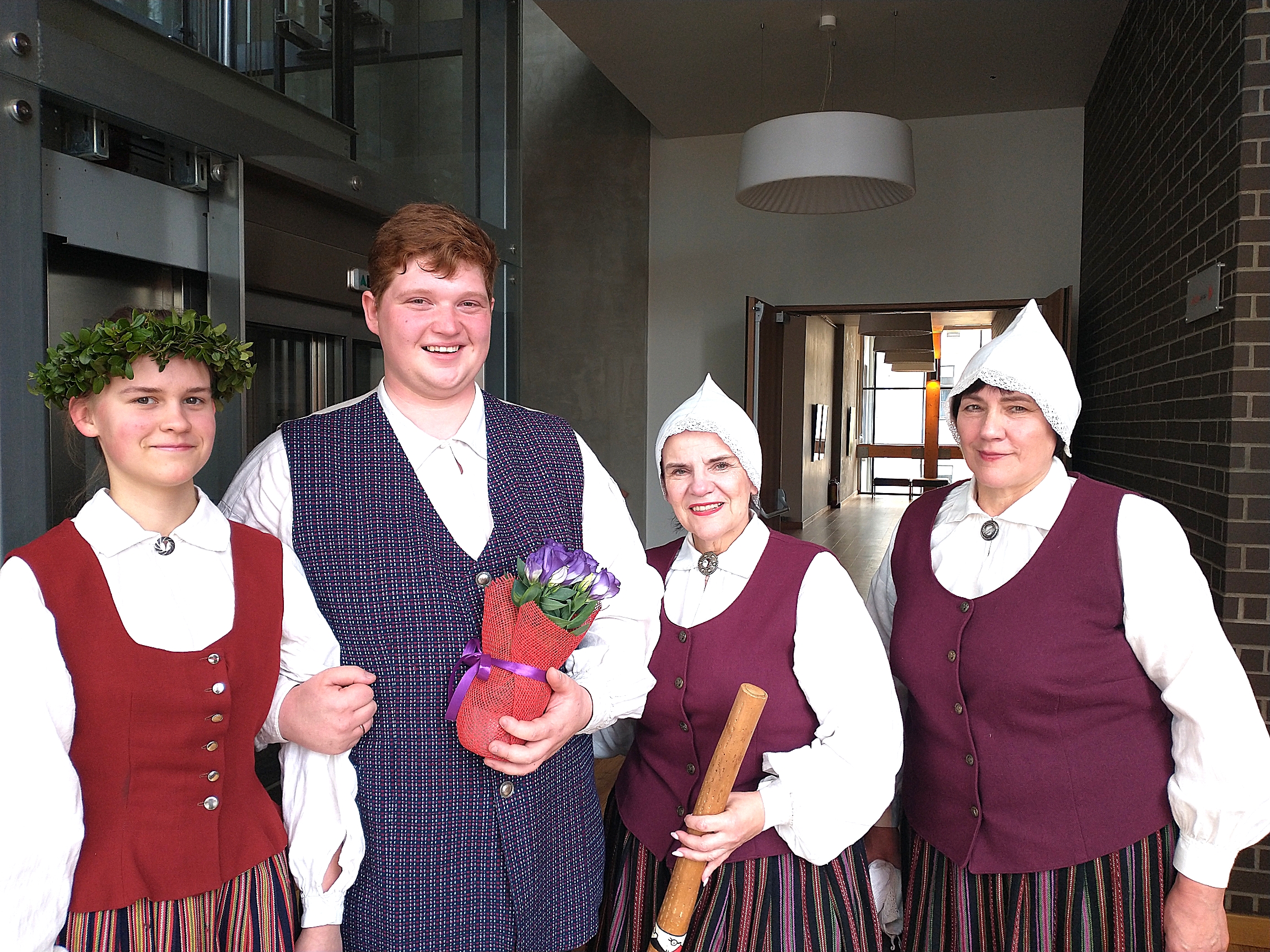 Veiksmīgi. Pēc uzstāšanās gandarīti Zaubes kora diriģents Kristers Briedis un dziedātājas Elza Indriksone (no kreisās), Daiga Bombāne un Anita Knēta.