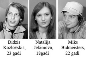 Trīs jaunieši – Didzis Kozlovskis, Natālija Jekimova un <b.Miks Bulmeisters – spriež par izklaides iespējām Cēsīs.