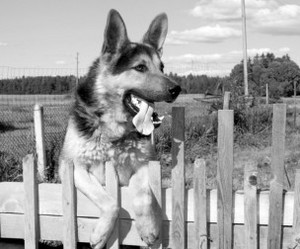 Stalbes pusē kāds sargsuns, kura saimnieks ievēro dzīvnieka turēšanas prasības un liek sunim dzīvot pagalmā, atradis iespēju, kā uzzināt, kas notiek apkaimē. Žogs ir gana augsts, lai varētu ērti uz priekšķepām atspiesties un ne vienu vien stundu pavadīt, vērojot apkārtni. Kas zina, cik daudz suns pastāstītu, ja prastu runāt!
