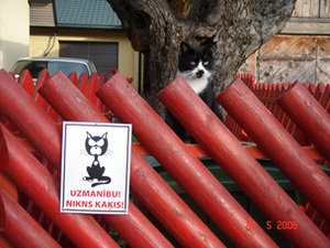 Otrdienas „Druvā” rubrikā „Garāmejot” publicēts attēls, kurā redzama norāde pie kādas mājas žoga, uz kuras rakstīts „Uzmanību! Nikns kaķis!”. Kaķa saimniece atsūtījusi laikrakstam apstiprinājumu, ka minka tiešām esot nikns, uzraksts neesot joks. Un vēl arī foto, kurā redzams niknais minka, kas sargā mājas žogu. Tagad zinām, ka ikvienam, kas iet Cēsīs pa Oktobra ielu, jāpiesargās – ja nu mincis sadusmojas!
