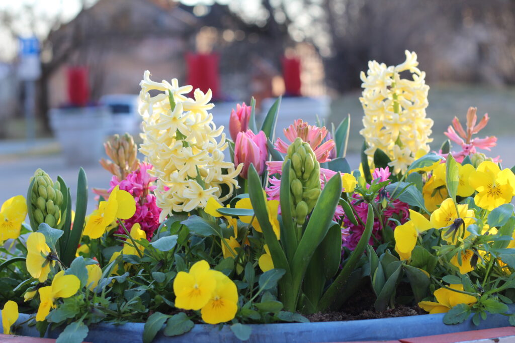 Dārzniece Indra Dzene atklāj, ka līdz šim pilsētā dažādās vietās izstādīti vairāk nekā četri tūkstoši puķu: atraitnītes ap trim tūkstošiem, mazākas un lielākas tulpes ap 300 stādiem, narcises – 600, hiacintes – 100, muskares – 200. Bet stādīšana līdz Lieldienām vēl turpināsies, ar ziediem papildinot arī teritorijas pie izglītības iestādēm, kopumā sasniedzot piecus tūkstošus stādu. Daļa ziedu vēl tikai raisa pumpurus, citi jau gatavojas ziedēt, bet viskošāk ziedu skaistums šobrīd vērojams Rožu laukumā, kur pavasaris ieraugāms un sasmaržojams ziedu un krāsu daudzveidībā.
