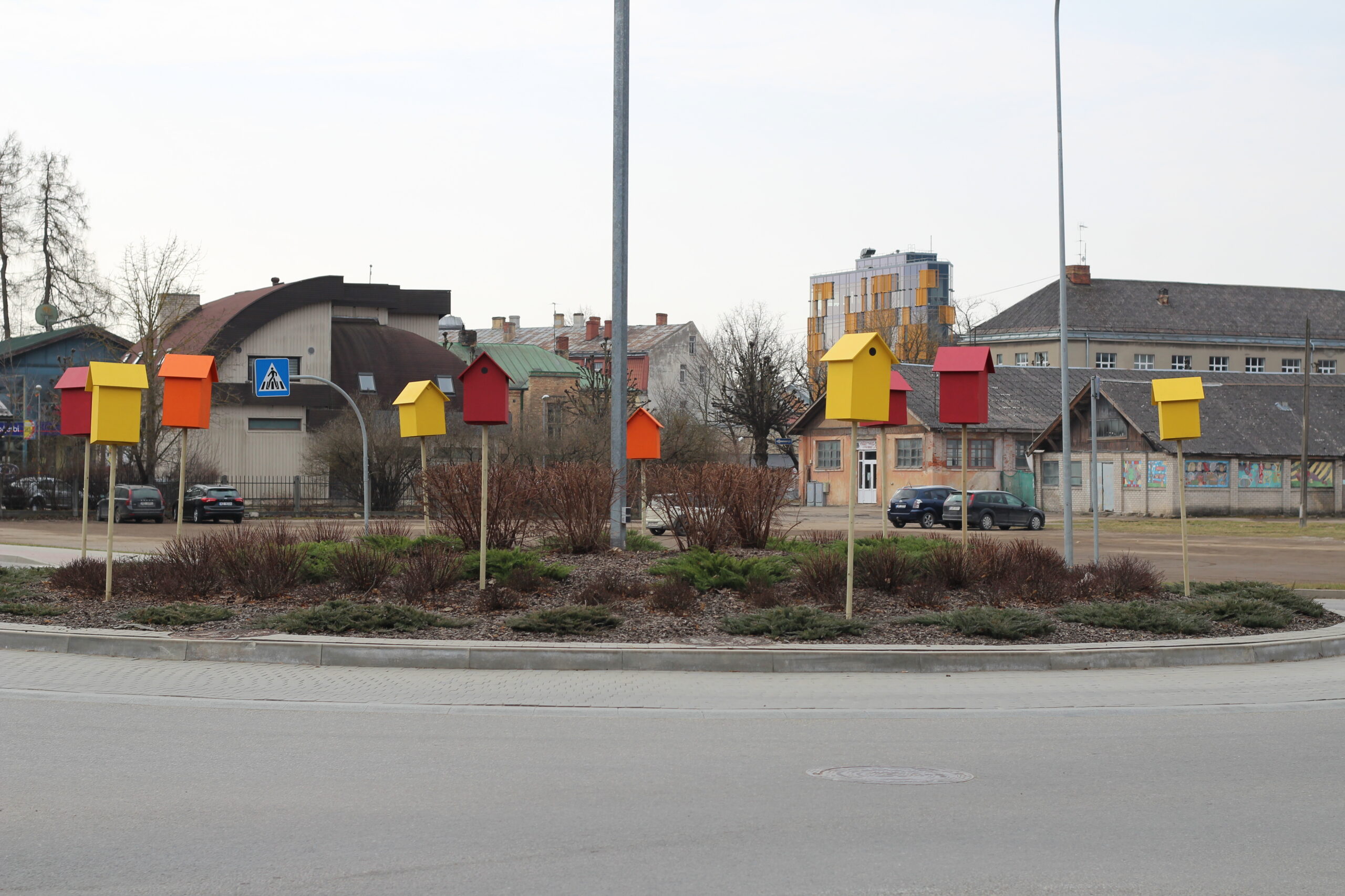 Ar vertikālām instalācijām daļu puķu podu – Līvu laukumā, pie Rožu laukuma, pie beķerejas netālu no stacijas un rotācijas apļos – Dzintara ielā un Piebalgas ielā – papildinājuši ainavu arhitekti.