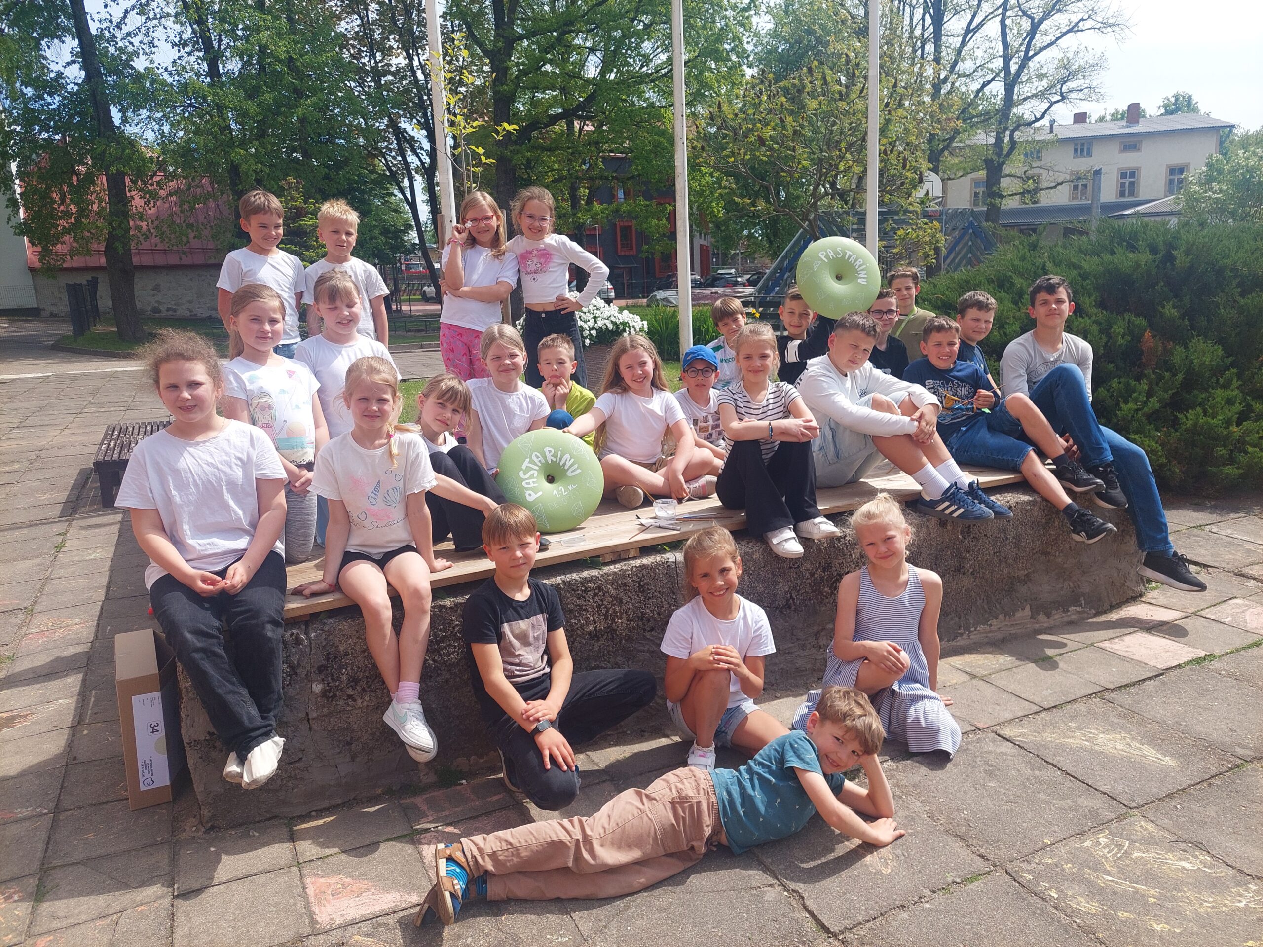 Katrs pielicis roku. Cēsu pilsētas Pastariņa sākumskolā zēnu koris un 1.-2. klašu deju kolektīvs “Pastariņi” uz pērlēm gleznoja dimantus, kā arī atstāja savu plaukstu nospiedumus, bet no pirkstu nospiedumiem veidoja ziedus. FOTO: Iveta Rozentāle