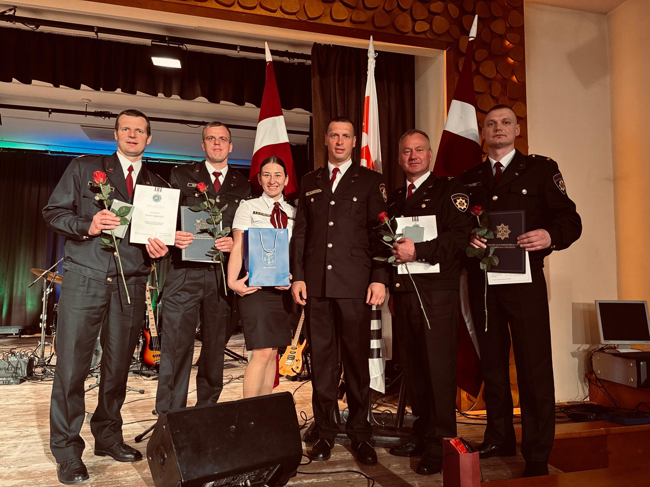 Apbalvotie. Par teicamu darbu apbalvojumus saņēma arī VUGD Cēsu daļas Jaunpiebalgas postenī strādājošie (no kreisās): Intars Spalviņš, Raivis Pundurs, Ance Austra Vilmane, Mareks Klimovičs, Ivars Damroze un Jāns Jansons. FOTO: publicitātes