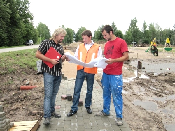Projekta autors Ivo Pāss “Druvai” stāsta: “Regulāri notiek būvniecības apspriedes, kurās vērtējam padarīto un raugāmies, lai notiktu viss, kā plānots. Līdz šim ar būtiskiem sarežģījumiem saskārušies neesam. Arī būvuzņēmējs SIA “Raunas Bruģakmens” ar visu tiek galā bez sarežģījumiem. Nedaudz gan traucē lietavas.”