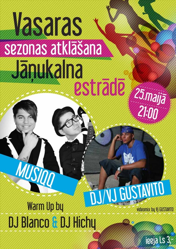 Piedalīsies populārā grupa “Musiqq” un viens no Latvijā pazīstamākajiem dīdžejiem “DJ/VJ Gustavito”, kā arī dīdžeji “Dj Blanco” un “Dj Hichq”.